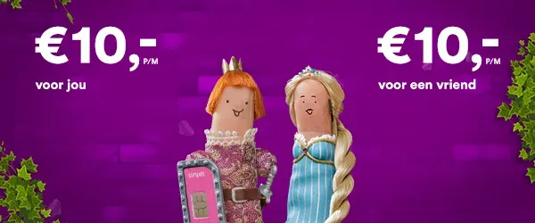 Ben je blij met je Sim Only abonnement bij ons? Top zeg! Zijn we blij mee. Gun je vrienden en familie óók dat plezier met Via Via Voordeel. Dan krijgen jij én degene die dankzij jou klant wordt wel €10 vriendenkorting op jullie sim only. Dit wordt meteen verwerkt op je volgende factuur! Mooie deal toch??## Hoe werkt het Via Via Voordeel precies? Met Via Via Voordeel draag je nieuwe klanten bij ons aan. Als bedankje krijgen jij én de nieuwe klant €10 vrienden- of familiekorting op jullie sim only. En het mooie is: je kunt zoveel bekenden aandragen als je wil. Pak je ook snel je voordeel?? Dan sta je vast te popelen om iemand aan te dragen bij ons razendsnelle 5G netwerk. Zo doe je dat!